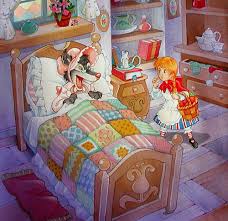 E si pappò pure Piccola Purpurea. Poi un provvidenziale personaggio puntò la propria pistola al peloso predatore, così potè liberare Piccola Purpurea e la parente pensionata.